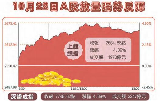【香港商報網訊】除了管理層19日發聲穩定A股投資者信心,更重要的是,救市不是停留在口頭上,而是馬上就辦,20日國務院金融穩定發展委員會就召開防範化解金融風險專題會議抓落實,21日兩大交易所就拿出具體措施。這樣的救市力度和強度都是空前的,推動22日內地股市全面井噴,兩市成交也放大到4200億元,顯示市場重新恢復了生機與活力。