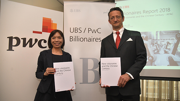 瑞银联同罗兵咸永道发表2018年亿万富豪报告指,全亚洲平均每周诞生超过3名亿万富豪(身家超过10亿美元),当中,中国内地平均每周诞生超过2名亿万富豪,即三分之二的亚洲新晋亿万富豪来自中国内地。香港亿万富豪人数由69人跌至67人,期内新晋富豪有5人,但有7人跌出榜外。不过,香港富豪财富比去年同期增加21%至3347亿元(美元,下同)。香港商报记者 锺颖琳