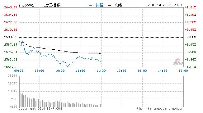10月29日消息,周一两市双双低开,受消费、金融板块回调影响,上证50一度跌近3%,沪指持续震荡下行;创业板指盘初快速下行探底,随后科技股有所表现,带动创业板指拉升翻红,随后创业板指围绕平盘线展开红绿震荡。从盘面上看,ST、养殖业、国产软件、网络安全等板块涨幅居前,白酒、自贸港、煤炭、物流、粤港澳等板块跌幅居前。贵州茅台(549.090, -61.01, -10.00%)早盘跌停,股价创一年新低。截止午间收盘,沪指报2560.74点,跌幅1.47%,深成指报7377.63点,跌幅1.69%;创指报1262.17点,跌幅0.08%。