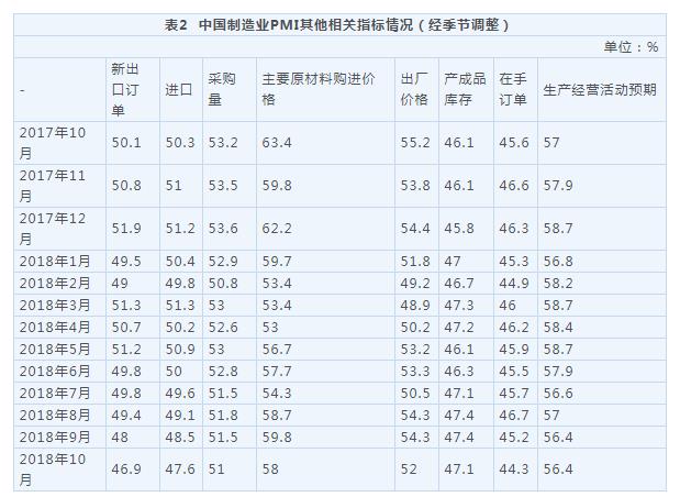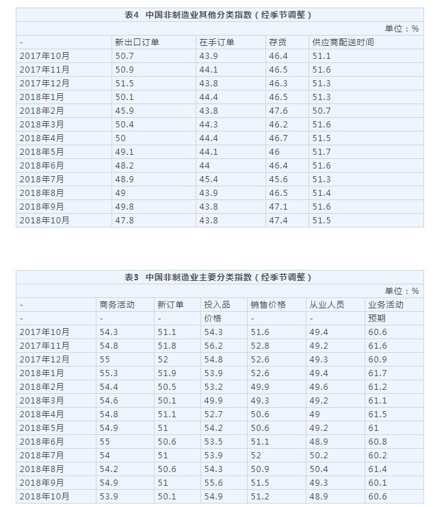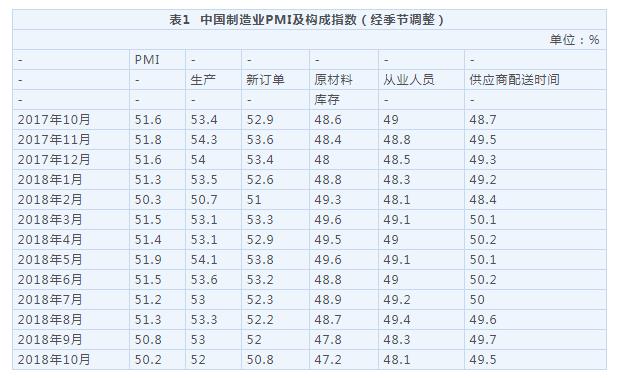2018年10月中国采购经理指数运行情况