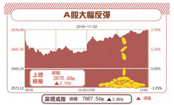 2日內地股市盤面出現諸多轉勢特徵,一是兩市場成交額超過了10月22日井噴時的4220億元,達到4513億元。雖然量能增加還不是非常明顯,但是能超越井噴日,顯示市場做多的持續性明顯增強;二是上證綜指有效站上2016年年初的熔斷大底部2638點,市場頹勢得到明顯扭轉;三是外資湧入洶湧,2日北上資金淨流入近180億創歷史新高,其中滬股通流入113.22億,深股通流入65.79億。長線資金大舉進場,為後續行情展開提供可持續的動能;四是管理層減少對交易過程的不必要幹預的表態,會激活短線資金炒作的熱情,市場將出現明顯的賺錢效應,吸引場外資金持續流入,內地股市成交額會持續放大。2日漲幅最大的是深圳股市,創業板指數漲幅接近5%說明,市場炒作環境趨於寬鬆,炒風蔓延,會不會出現一管就死一放就亂的新情況,也值得關注。