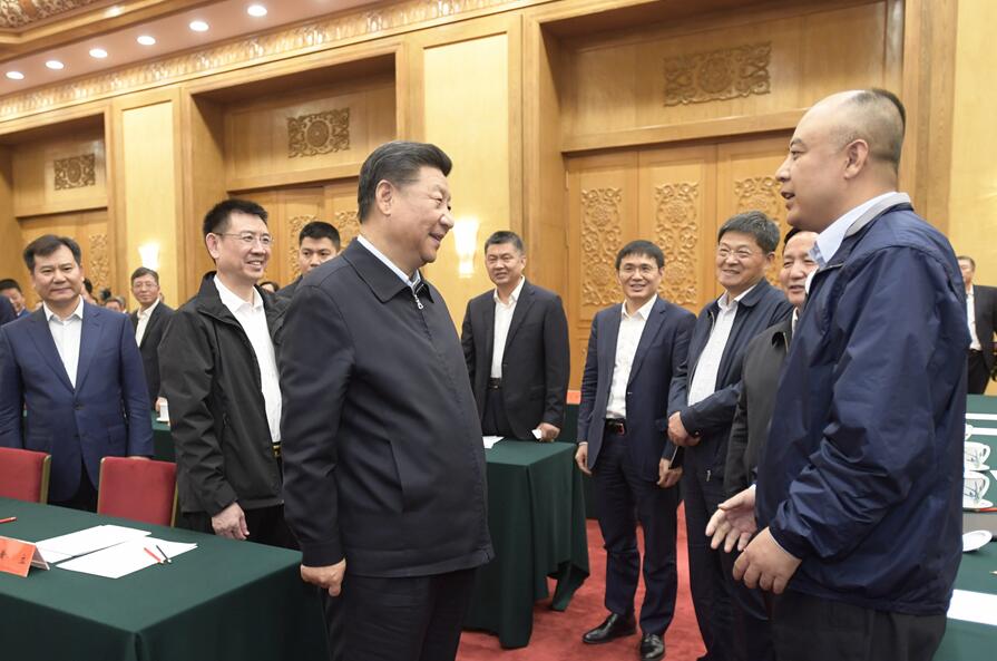 11月1日,中共中央总书记、国家主席、中央军委主席习近平在北京人民大会堂主持召开民营企业座谈会并发表重要讲话。这是习近平同民营企业家们亲切交流。 新华社