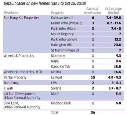 数据显示,从年初到10月底,香港新房交易中,已发生36起个人买家违约案例,而2007年全年仅有9起,数量增长了3倍。