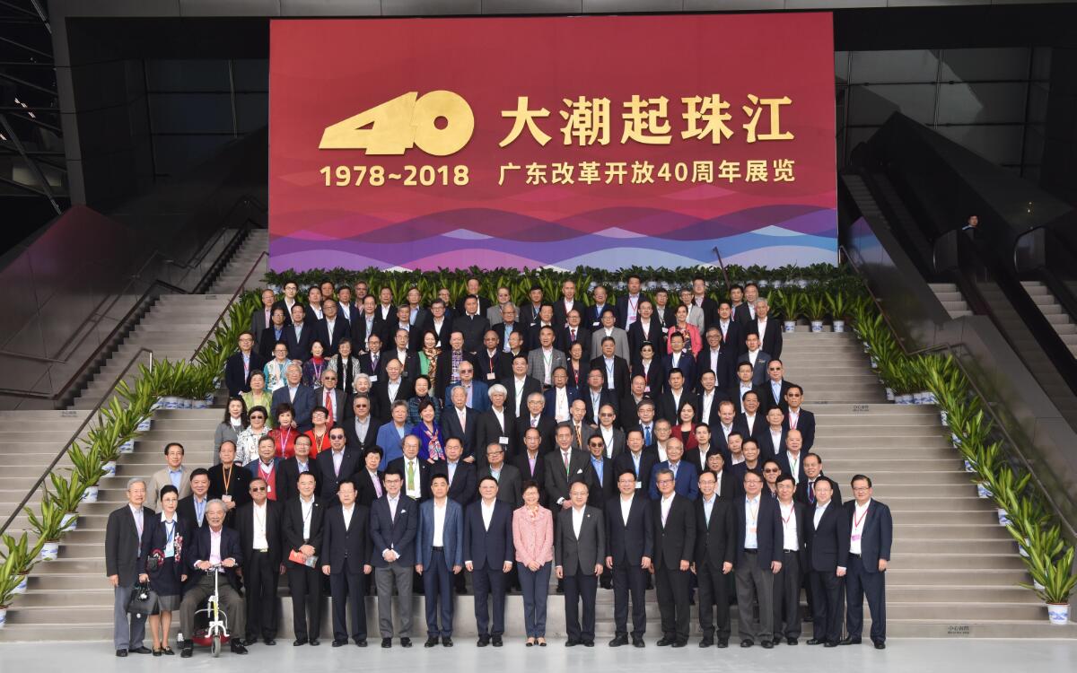 香港慶祝國家改革開放40周年代表團昨日參觀在深圳舉行的廣東改革開放40周年展覽。圖為林鄭月娥(前排右九)、中聯辦主任王志民(前排右八)、深圳市委書記王偉中(前排右十)、深圳市市長陳如桂(前排右七)等與代表團成員合照。