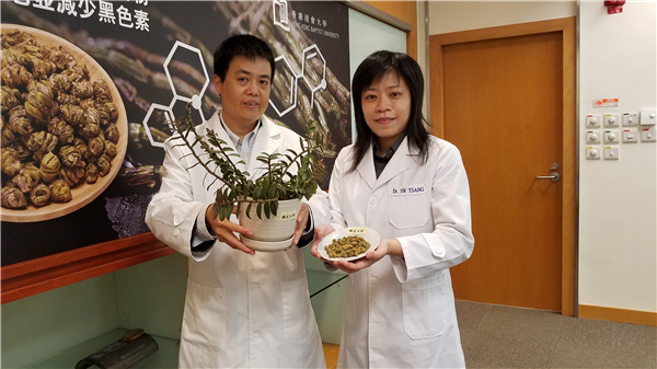 她指出,研究團隊成功從「鐵皮石斛」和「金釵石斛」中提取一系列天然芪類化合物,經過多重測試和反覆實驗,證實該類化合物能顯著抑制細胞和實驗動物中的自由基和活性氧,具有強效的抗氧化作用,可預防皮膚衰老。她又說,這類化合物能有效抑制黑色素細胞中的酪氨酸酶及相關蛋白酶,並顯著減少皮膚細胞中黑色素的形成,幅度約25%,效果比維生素C、維生素E和水楊酸更好,因此可以幫助減少皮膚色素沉,從而預防皮膚變黑。