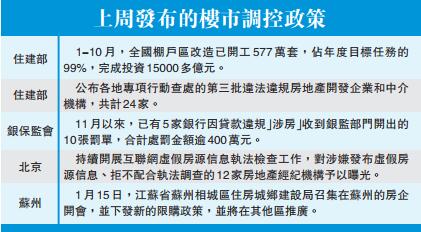 上周,中國各地房地產市場相關政策和信息發布主要有5次,包括中國住房和城鄉建設部通報各地專項行動查處的第三批24家違法違規房地產開發企業和中介機構名單;北京對涉嫌發布虛假房源信息、拒不配合執法調查的12家房地產經紀機構予以曝光;蘇州限購升級等。