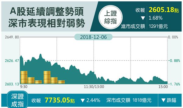 年底,美股跌勢反覆持續,讓各方開始擔心領導多年全球牛的美國股市,會不會成為全球熊的領頭羊。雖然美國股市周三因老布殊國葬休市,但昨日亞市早盤美股期指跌幅擴大,承壓之下的亞太股市在上一交易日普遍大跌後再度出現劇烈跌幅,而5日還一度堅挺的A股也跟隨下挫,上證綜指下跌44.63點或1.68%,再度考驗2600點關的支撐力,深證成指跌幅更達到193個點或2.44%。