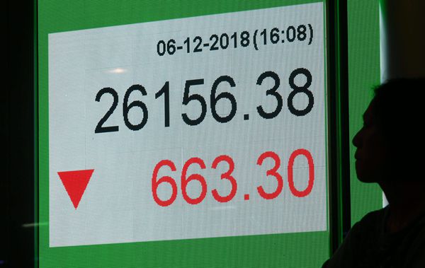 12月6日,恒生指数跌663.30点,跌幅2.47%,收报26156.38点。全日主板成交969.51亿港元。新华社