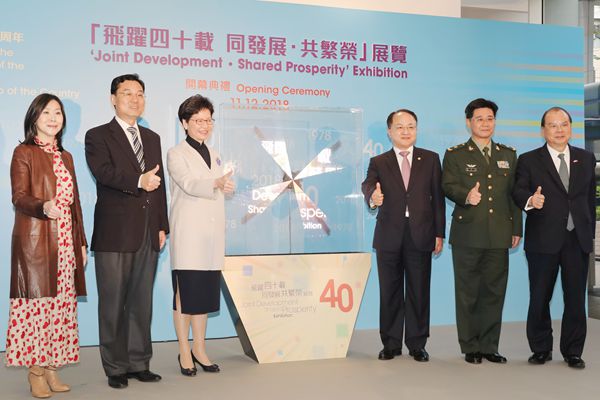 「飛躍四十載·同發展·共繁榮」展覽於昨日舉行開幕典禮。行政長官林鄭月娥、中聯辦主任王志民、政務司司長張建宗等多名嘉賓主禮。林鄭月娥於典禮上致辭時表示,香港過去全程投入國家改革開放,40年來作出了重大貢獻。香港也受益於內地的高速發展,轉型成為國際金融中心,更是全世界最大的離岸人民幣業務中心。