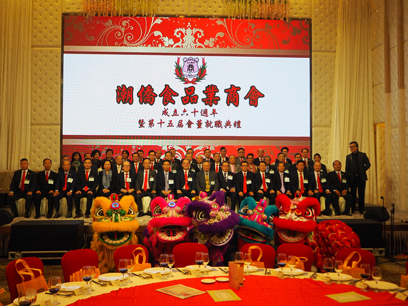 潮僑食品業商會成立六十周年暨第十五屆會董就職典禮上,賓主合影留念。