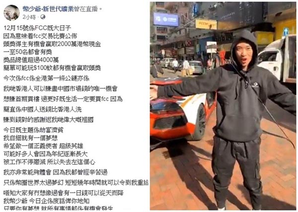 「幣少爺」黃鉦傑事先在網上張揚會在深水埗「派錢」。