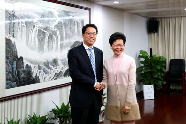 林鄭月娥昨日下午到國務院港澳辦,獲港澳辦主任張曉明在門外迎接。據港澳辦網站報道,12月16日下午,張曉明在港澳辦與香港特別行政區行政長官林鄭月娥舉行工作會晤。