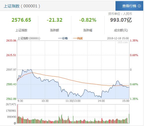 网易财经12月18日讯今日沪指缩量下跌,尾盘有所拉升,创指尾盘一度翻红,黄金股逆势上涨,领涨两市,金一文化与东方金钰涨停,午后国防军工、公路、电力等板块强势拉升,带动大盘走强,保险、基建、证券、房地产、银行等权重板块集体下跌,粤港澳大湾区、雄安新区领跌两市,前期表现较好的5G、软件、芯片等科技股跌幅也比较大,主要是受外围股市大跌影响。