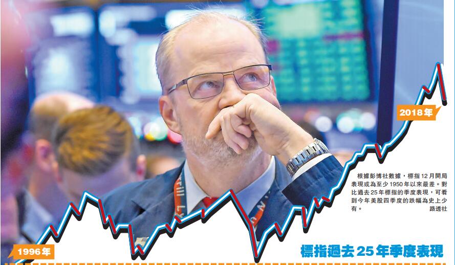 根據彭博社數據,標指12月開局表現或為至少1950年以來最差。對比過去25年標指的季度表現,可看到今年美股四季度的跌幅為史上少有。