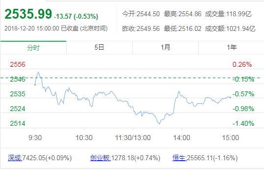 12月20日消息,早盘三大股指小幅低开,尽管券商、创投板块小幅异动,但受到银行股拖累,沪深两市股指冲高回落,创业板指数微涨,上证50指数(2334.9217, -34.63, -1.46%)跌近1%。其中招商银行(25.910, -0.86, -3.21%)、宁波银行(15.880, -0.40, -2.46%)等多只银行股重挫。另外,白马股板块早盘单边走弱,中国建筑(5.860, -0.36, -5.79%)、云南白药(72.350, -1.55, -2.10%)、五粮液(51.860, -0.70, -1.33%)、中国国航(8.030, -0.10, -1.23%)、恒瑞医药(52.950, -2.16, -3.92%)纷纷跟跌。临近上午收盘,指数稍显分化,随着创投板块拉升带来的积极影响,创业板指数盘再度走强。而银行、白酒板块的拖累,沪指依旧呈现弱势震荡格局。市场依旧缺乏热点,资金谨慎情绪较强,赚钱效应较差。午后,上证50指数持续下挫2%跌破2331点,跌破7月3日低点,股指创19个月新低,即刷新2017年5月以来新低。中国建筑大跌5%,中国交建(11.870, -0.47, -3.81%)、招商银行、上海银行(11.400,-0.33, -2.81%)、中国铁建(11.270, -0.36, -3.10%)等多只个股均走弱。尾盘,两市指数出现小幅分化,次新股、券商板块双双反抽,指数稍显分化,创业板指数一度涨逾1%,深成指也由绿翻红,沪指则跌幅同样有所收窄。抄底资金逐渐涌入,紧张情绪有所好转。截止收盘,沪指报2536.27点,跌0.52%,深成指报7426.44点,涨0.10%;创指报1278.16点,涨0.74%。