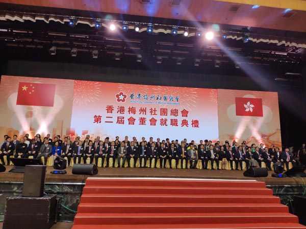 香港梅州社團總會第二屆會董會就職典禮上,賓主合影留念。