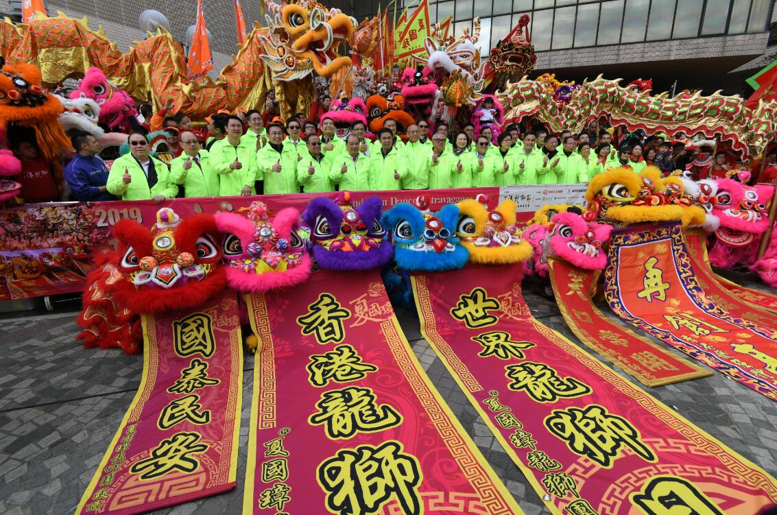 昨日上午,逾200龍獅由尖沙咀鐘樓出發,沿廣東道巡遊表演1小時,市民及遊客能近距離感受醒獅歡騰、龍躍香江,場面極為壯觀。除了文化中心,獅隊還會到西九高鐵站及黃大仙廟外表演。今年的隊伍不僅有夏國璋龍獅團等老牌獅隊,還有逾60位小童參與,十分吸睛。
