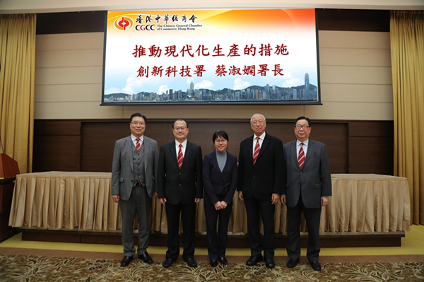 【香港商報网訊】香港中華總商會日前邀請創新科技署署長蔡淑嫻擔任會董會講座嘉賓,介紹政府有關推動創新科技的措施,并就支援企業研發、人才培訓及推動「再工業化」等議題與會員交流意見。