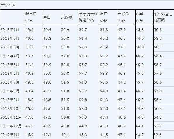 据统计局数据,2019年1月份,我国制造业采购经理指数(PMI)为49.5%,比上月微升0.1个百分点,连续第二个月低于荣枯线。
