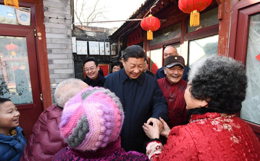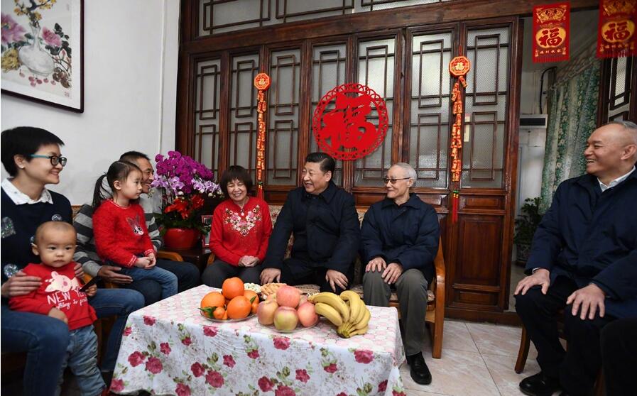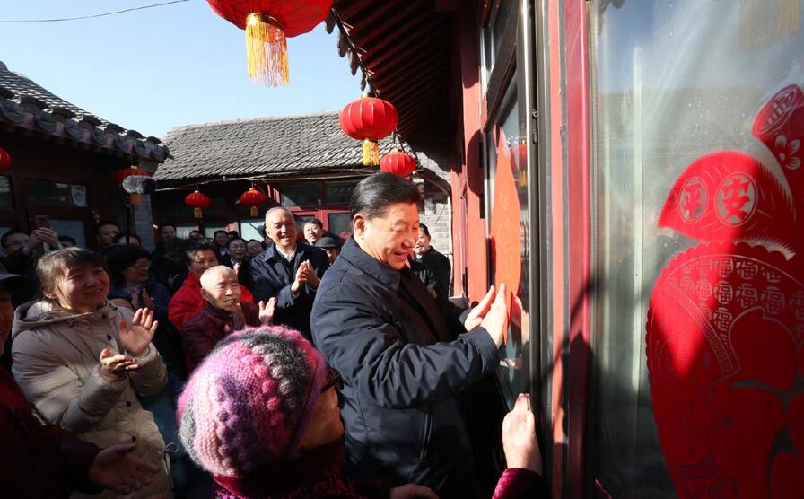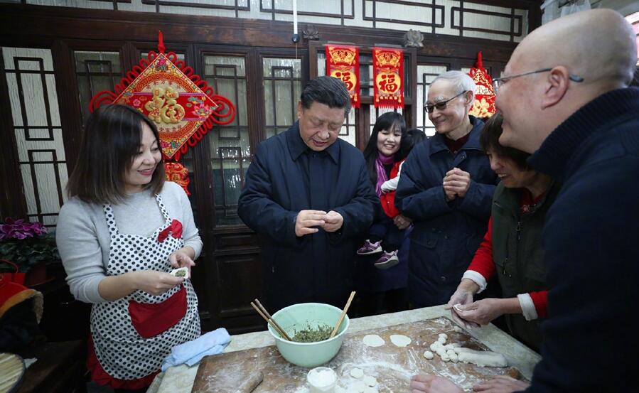 2月1日上午,习近平来到北京前门东区,沿草厂四条胡同步行察看街巷风貌,走进居民家中看望慰问,了解居民生活情况,与群众一起包饺子、拉家常,并向大家致以新春祝福。