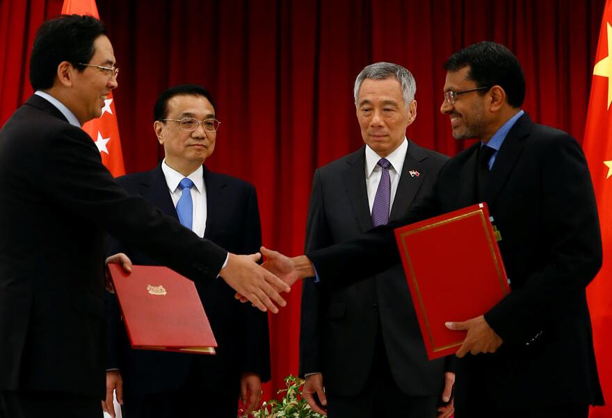 2018年11月12日,中國國務院總理李克強和新加坡總理李顯龍在新加坡總統府共同見證《中新自貿協定升級議定書》的簽署。