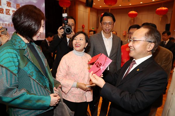 團拜活動分為兩節進行。首節的茶敘交流環節在三樓會議廳舉行。廳內,張燈結綵,喜氣洋洋;賓主暢敘,其樂融融。王志民主任與議員逐一握手寒暄,致以新春問候,還向近期喜得千金的容海恩議員送上賀喜利是,並陪同議員一同參觀中聯辦辦史展。茶敘期間,王志民主任與議員們就大家共同關心的問題,特別是圍繞國家剛剛公布的《粵港澳大灣區發展規劃綱要》以及香港更好融入國家發展大局等進行了深入交流,並就議員們分別提出的香港居民在內地居住滿183天的稅務安排、香港金融保險等專業服務進入內地市場、香港同胞在內地銀行開戶及購買住房、促進大灣區貿易物流發展、建設「國際科創中心」、青年在內地學業就業創業等問題作了積極回應。王志民主任和其他辦領導還與出席午宴的全體議員合影留念。