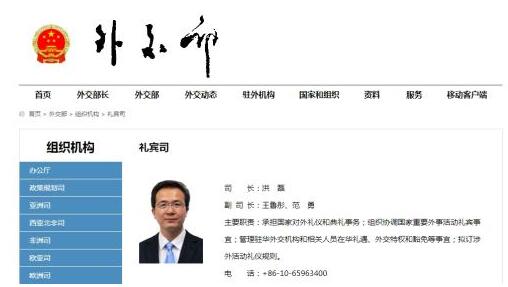 22日,外交部网站组织机构礼宾司一栏更新。 外交部网站截图