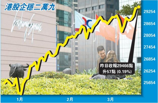 總結上周,恒指累積升幅達783點(2.78%);國企指數上周累升351點(3.15)。上周滬綜指收報3021點,收復三千關,累計指數上周升1.75%,整個兩會期間滬綜指上揚0.9%。