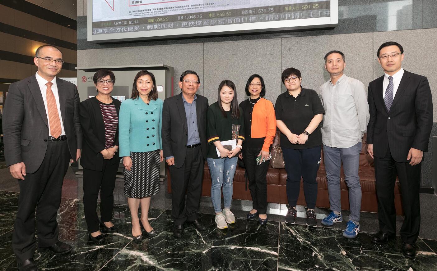 中銀香港副總裁龔楊恩慈(左三)與在港首批完成開立內地銀行帳戶的客戶合照。