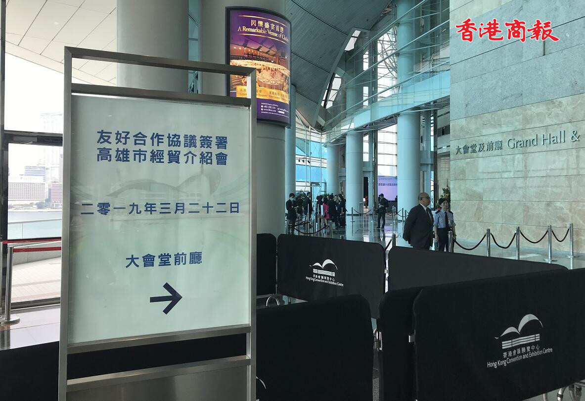 22日下午兩點,香港中華出入口商會「友好合作協議簽署暨高雄市經貿介紹會」在香港會展舉行。台灣高雄市市長韓國瑜率領高雄市經貿訪問團來港,了解香港經貿發展及建設,與香港工商業界作經貿交流,促進兩地合作。