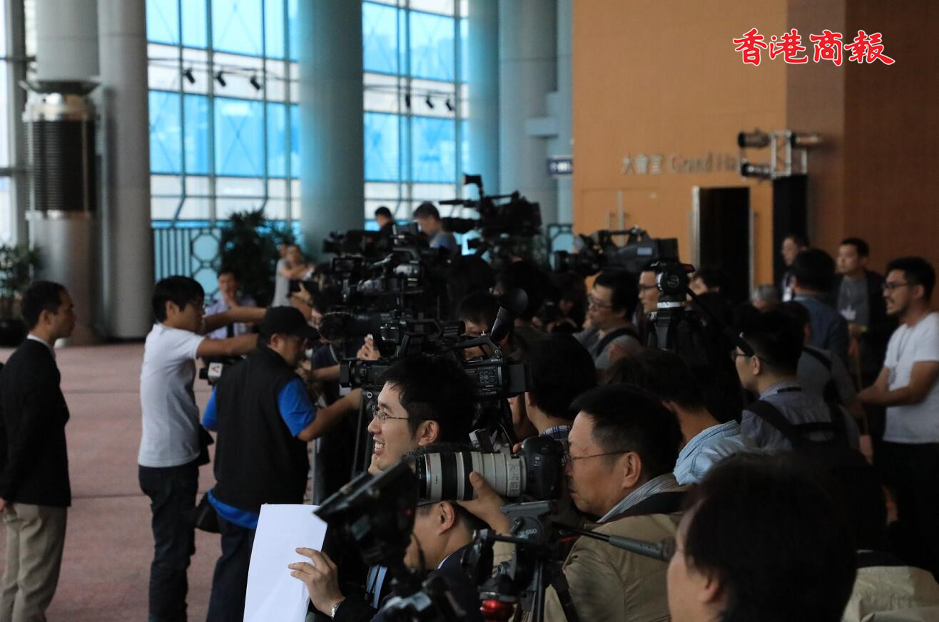 在會議開始前一個小時,現場已經來了不少記者排隊等候。记者刘深 摄