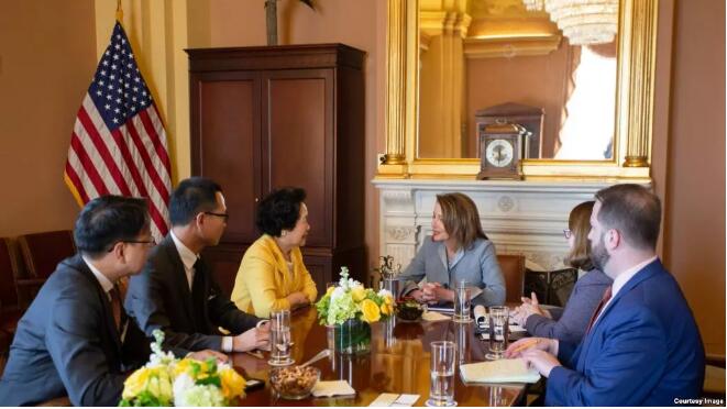 据香港媒体报道,陈方安生与香港立法会议员郭荣铿、莫乃光等人25日拜会美国众议院议长佩洛西。前两天,三人已与美国国家安全委员会官员会面,并面见美国副总统彭斯。