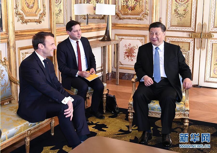 3月25日,国家主席习近平在巴黎爱丽舍宫同法国总统马克龙会谈。 新华社