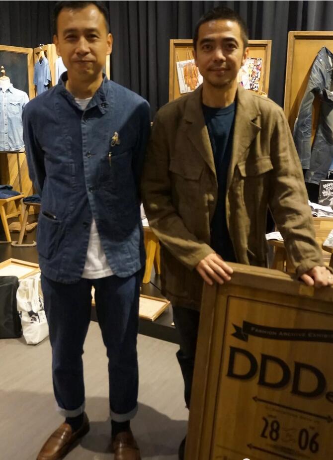 資深傳媒文化人及策展人黃源順(右)及程少偉(左)展示他們的牛仔珍藏品。
