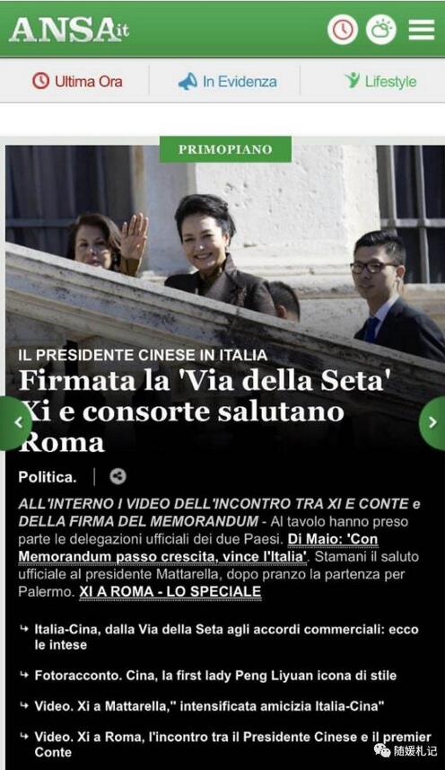 《赫芬顿邮报》意大利语版,提到了她喜欢穿“中国设计”“中国制造”的衣服。