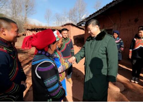 2018年2月11日上午,习近平总书记来到位于大凉山深处的昭觉县三岔河乡三河村、解放乡火普村,走进彝族贫困群众家中,看实情、问冷暖、听心声,同当地干部群众共商精准脱贫之策。