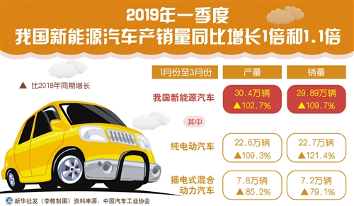 中国汽车工业协会近日公布的最新数据显示,在传统乘用车市场持续下挫,新能源补贴新政实施的大环境下,新能源汽车市场再一次逆势增长。1月份至3月份我国新能源汽车产销比上年同期增长了102.7%和109.7%。其中,纯电动汽车产销完成22.6万辆和22.7万辆,比上年同期增长109.3%和121.4%;插电式混合动力汽车产销分别完成7.8万辆和7.2万辆,同比增长85.2%和79.1%。