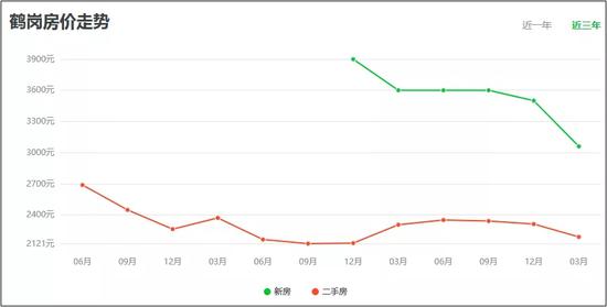 多家房产交易平台显示,2019年1月到3月间,鹤岗房价几乎“腰斩”。新房方面,鹤岗在售楼盘最低销售价格为3200元/平米,最高为4300元/平米;上百套正在线销售的二手房源中,总价最低房屋售价为3.8万元。