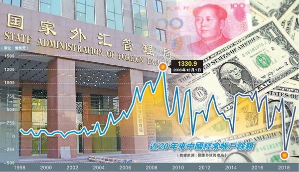 中證監副主席方星海昨日表示,2018年中國經濟出現經常帳戶基本平衡,且幾乎轉為逆差。