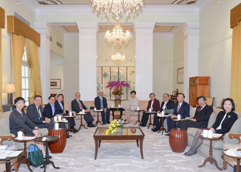 香港桂冠論壇委員會董事會成員今年二月在禮賓府見面。资料图