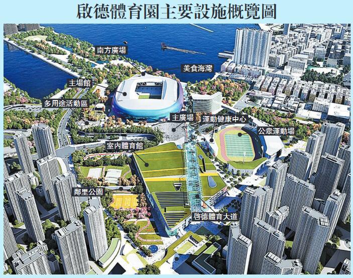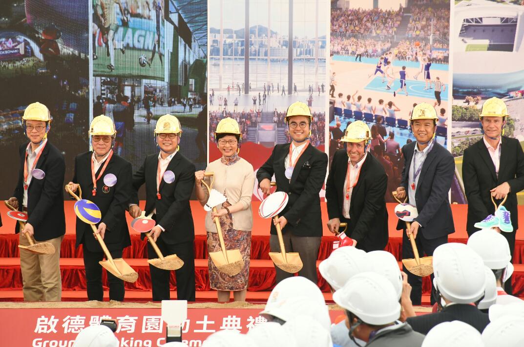 佔地28公頃的啟德體育園昨早舉行動土典禮。林鄭月娥致辭表示,體育園是政府有史以來在體育基建方面的最重要投資,建成後將是全港最大的體育設施,提供現代化和多用途的體育和休憩場地,對推動體育普及化、精英化和盛事化均有重大作用,加上體育園透過南看台的大型玻璃幕牆可以將維港美景融入場內盛事之中。