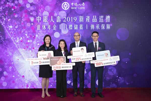 【香港商報網訊】中銀人壽昨日推出多項新產品,包括延期年金計劃、網上儲蓄計劃及萬用壽險計劃,並提供首年保費折扣優惠,滿足客戶達成退休入息、短期儲蓄及財富傳承的目的。中銀人壽執行總裁老建榮表示,有關產品為市場上唯一一隻具全期回報保證的年金產品,面對市場競爭,未來仍會向優化產品競爭力方面發展。