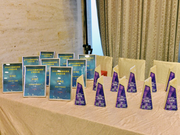 傑出青年企業家獎盃和支持機構感謝狀。