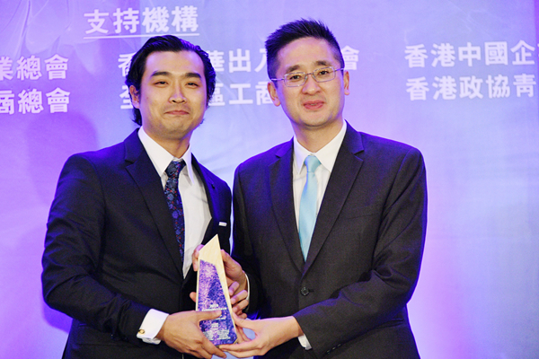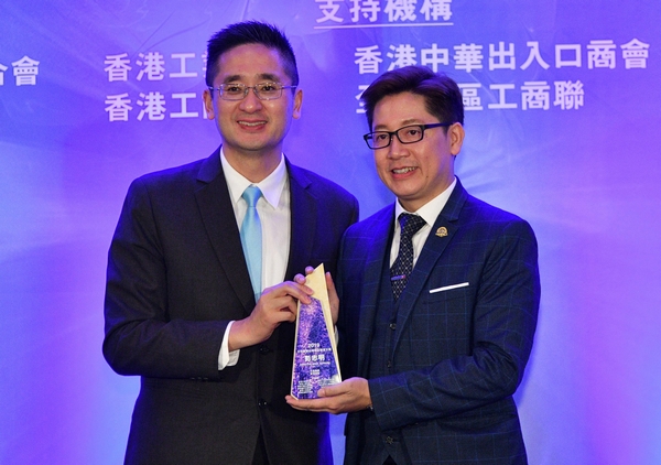 商務及經濟發展局署理局長陳百里將獎座頒發給沈慧林(右)。