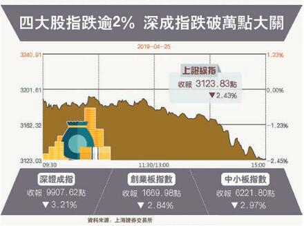 【香港商報网訊】昨日,中國A股四大股指悉數大跌。其中,上證綜指跌逾2%,失守3200點關口。