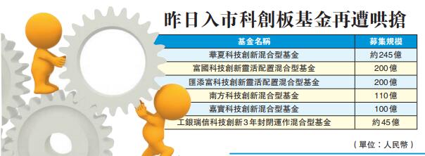 由於首批7隻科創板基金均設置了10億元的最高募集規模上限,因此,首批科創基金合計最終募集總規模不超過70億元。截至昨日下午5點,當天認購的6隻科創基金中,華夏科技創新混合型基金募集規模約245億元,富國科技創新靈活配置混合型基金200億元,匯添富科技創新靈活配置混合型基金200億元,南方科技創新混合型基金110億元,嘉實科技創新混合型基金100億元,工銀瑞信科技創新3年封閉運作混合型基金45億元左右,合計認購規模將超過900億元。