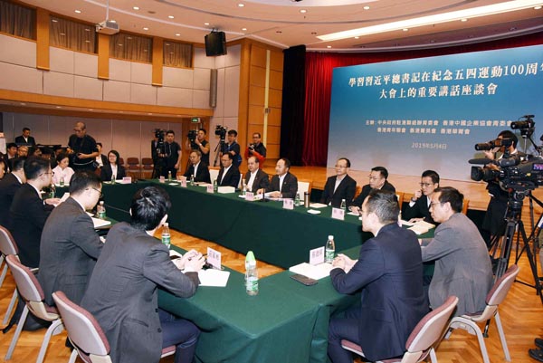 昨日,紀念五四運動100 周年暨學習習近平總書記在紀念五四運動100 周年大會上的重要講話座談會在港舉行。(中聯辦網站圖片)