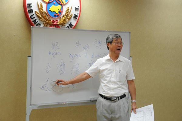 何校長利用拼音教授客家話。 圖片由何觀順提供