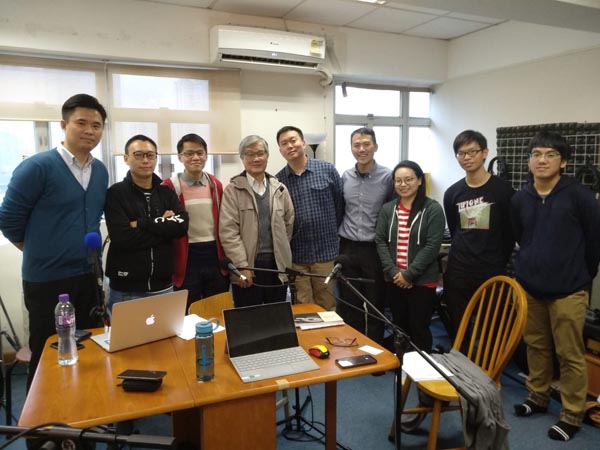何校長(左四)應香港歷史文化研究會邀請錄製推廣 「客家話」 的電台節目。左一為筆者。
