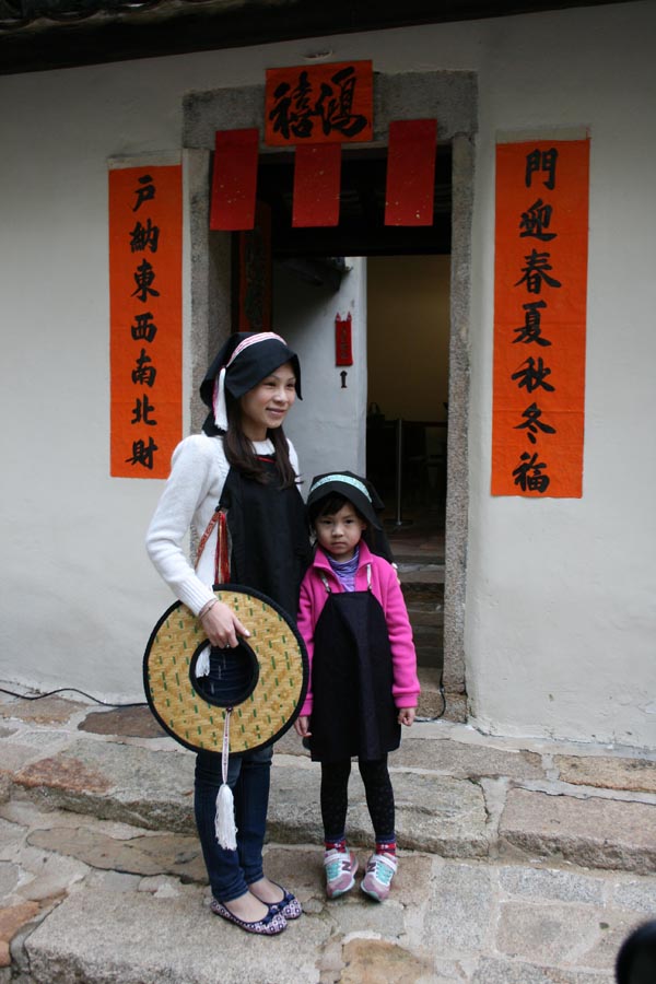 涼帽、織帶與深色圍裙是客家婦女的特徵。